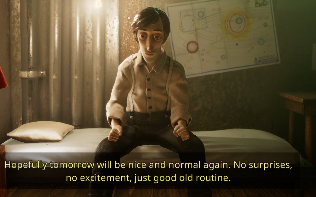 The game does throw in hints at bigger things afoot, and these events would pique my interest, but then it would usually pivot right back to something more tedious. It gets frustrating, and perhaps because of my slight irritation, the character development and the world building weren’t hitting on the level I hoped for either. After four hours with the game, I already felt close to wanting to take at least a few days off from it. There is a funny scene after a hectic day where Harold hopes things go back to his normal “good old routine”, but as a player, I found myself desperately hoping that would not be the case, as I was absolutely sick of Harold’s life and routine.