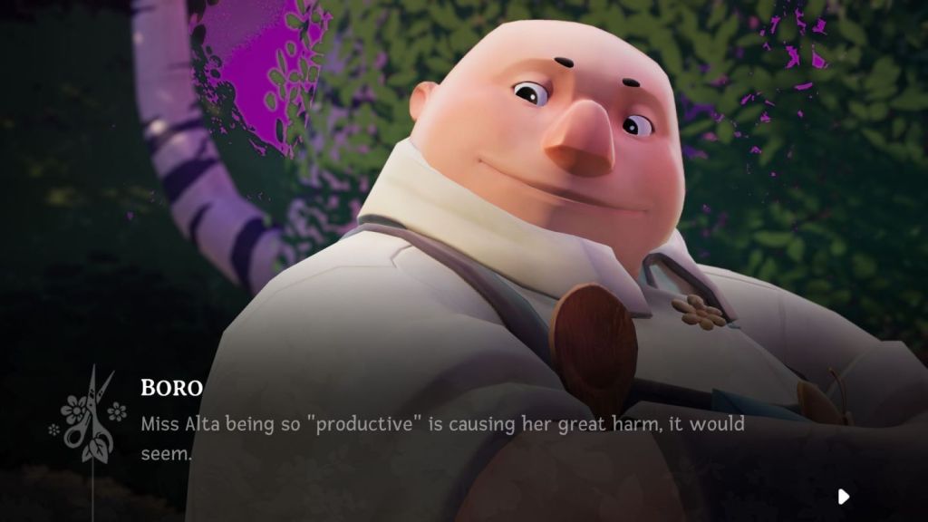 Wanderstop is a game about burnout and healing. Throughout the game, the fierce warrior Alta is forced to learn how to rest and not continuously push her body past its limits. She is forced to learn this because her strength is fading from all the battles she has been through without ever taking a breather. She is learning this important lesson while working with the affable and wise Boro.